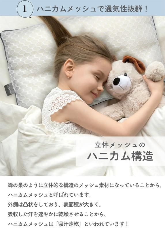 低い枕が好きで、大人ですが小学生高学年用を購入しました。これまでなかなか自分に合う枕が見つからず、よく買い替えていましたが、ようやく理想の枕に出会えました。フワフワしすぎず、固すぎず、もちっとした枕が後頭部から首まで、隙間を作らずにしっかり支えてくれます。メッシュなので熱がこもらず、買った初日から快適に眠れました。この枕にして良かったです!子供にも買ってあげたいと思います。