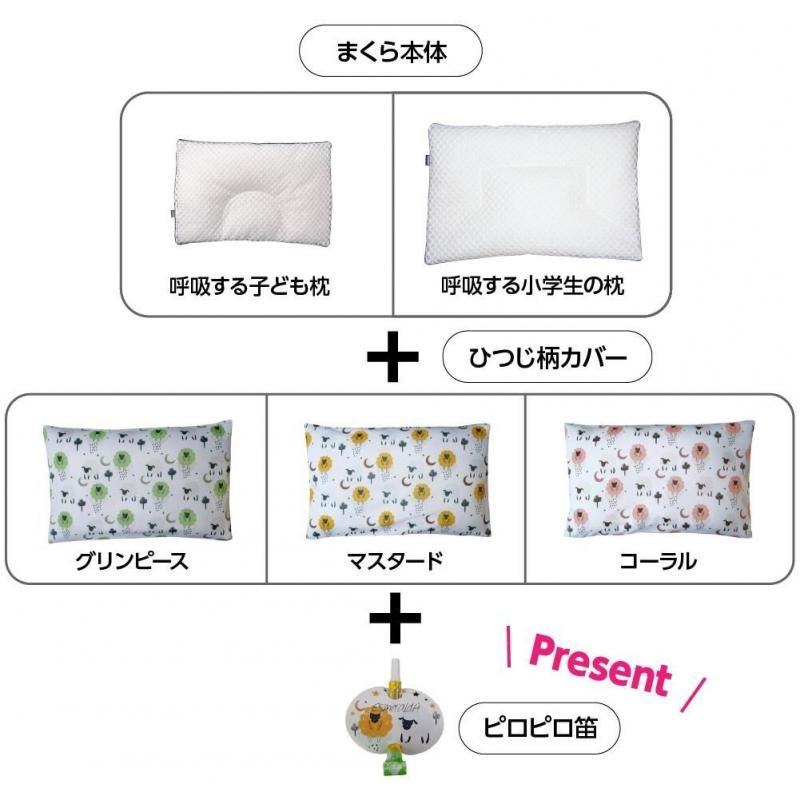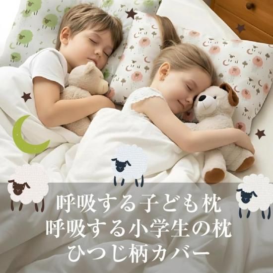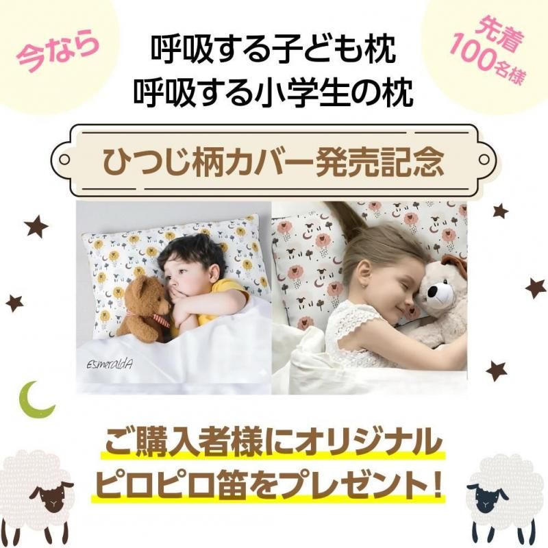 エスメラルダ【ひつじ柄カバー】 呼吸する子ども枕/呼吸する小学生の枕 先着100名様にオリジナルピロピロ笛プレゼント