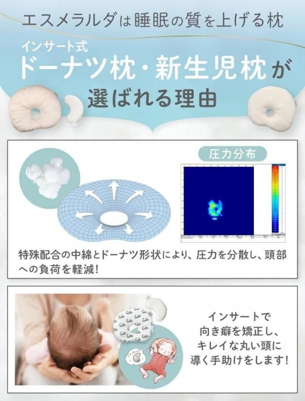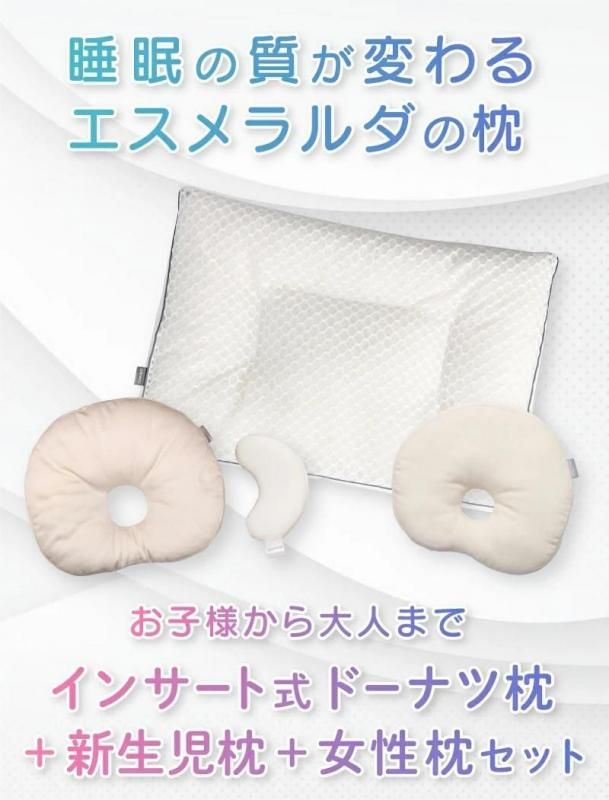 【公式】エスメラルダ 呼吸する枕(女性)+丸ごと洗える インサート式ドーナツまくら 新生児枕セット 女性 ストレートネック【エスメラルダの枕】