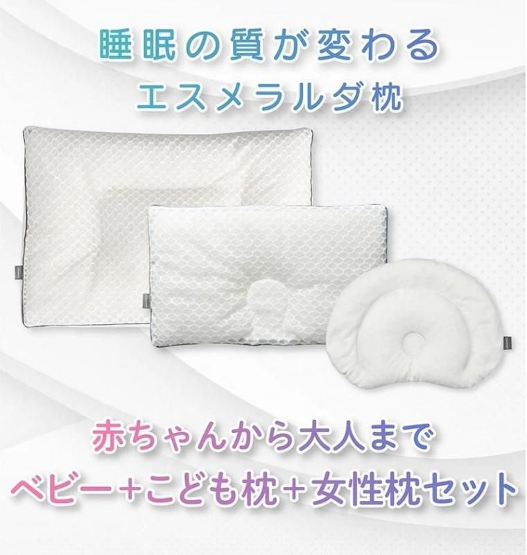 【公式】エスメラルダ 呼吸する枕(女性)+パーソナルムーブベビー枕+呼吸する子ども枕セット 新生児から使えるドーナツまくら 呼吸するこども枕 呼吸する枕 セット 女性 ストレートネック