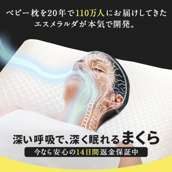 【エスメラルダ】大人用まくら|深い呼吸で深く眠れる【スーストン枕】睡眠中の気道を確保する構造|14日間返金保証付